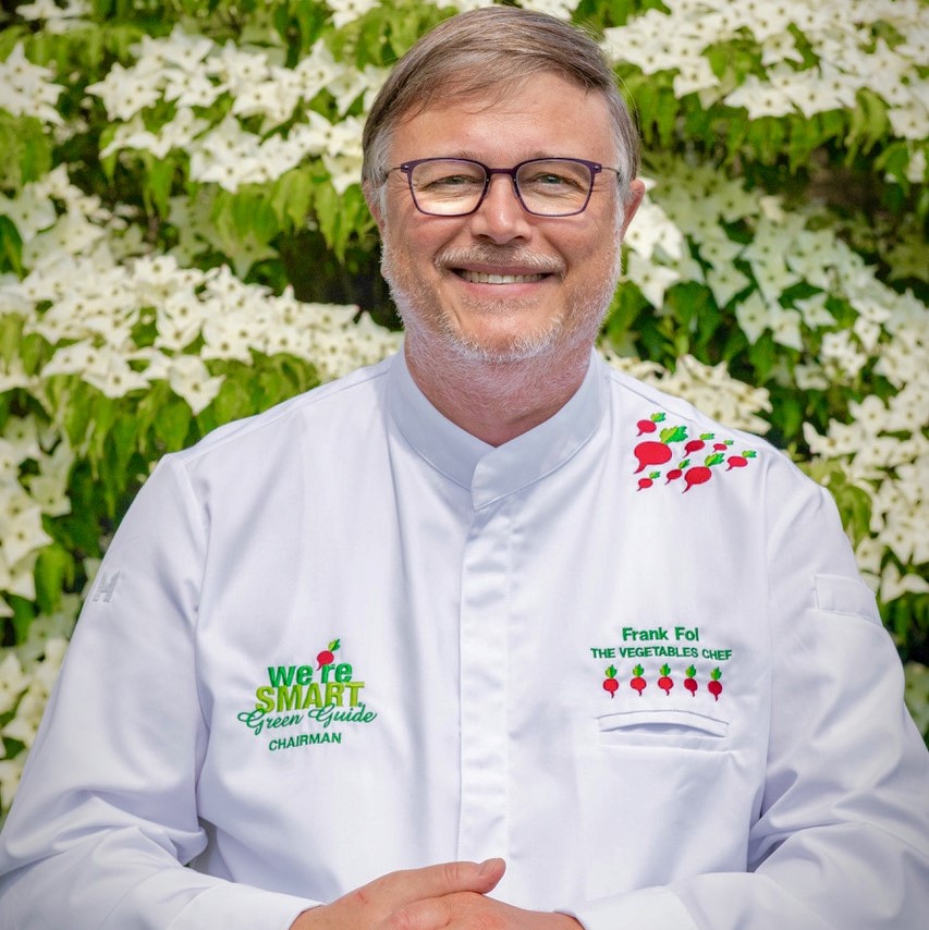 Frank has been promoting his philosophy of « Think Vegetables! Think Fruit! » for more than 30 years, spearheading a contemporary movement that puts vegetables back at center stage. He’s taken this approach to new heights both in and out of the kitchen, from his Michelin starred restaurant concept to creating the We’re Smart® platform.