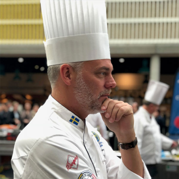 Former chef and “farmer boy,” Marcus Hallgren has been working in the culinary profession since 1984. A culinary teacher for fourteen years, he is now working as Principalata Hospitality School in Sweden. A boardmember of both the Nordic Chefs Association and the Swedish Chefs Association, Hallgren is a Worldchefs Certified Judge and Head Waiter of the Swedish Culinary Team.